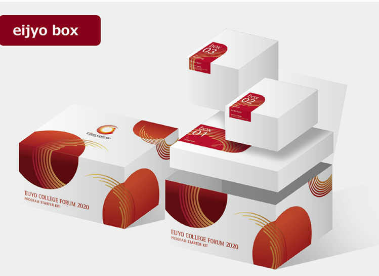 リモート参加でもエイジョが一体感を持ち、充実した時間を過ごせるようにと、プロジェクトマネージャーの小森とも子は今回、幾つもの工夫をしました。その 1つは『エイジョ BOX』。使用する文具やお楽しみグッズを入れた特別セットを事前にエイジョのもとへ届けたのです。初日は全員で ”開封の儀 ”を行い、エイカレが始まった!というムードを高めました。