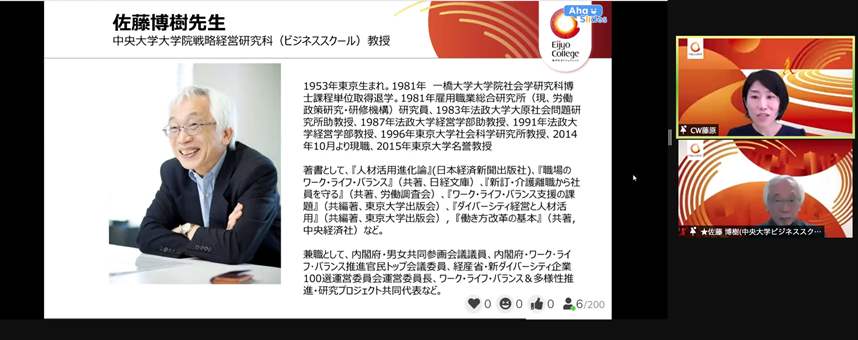 実証実験については、特別審査員としてご参画いただいている佐藤博樹教授(中央大学大学院戦略経営研究科)にその意義についてこんなお話しをいただきました。