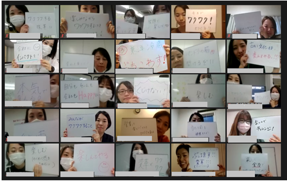 コロナ渦の今年は、キックオフとなるフォーラムも New Normalに。エイカレ史上初のフルオンラインで開催しました。企画・運営の株式会社チェンジウェーブの佐々木裕子と藤原智子がファシリテーションを行い、全国各地から 100名を超えるエイジョがオンライン上のフォーラムに集結したのです。ブレイクアウトルームでは異業種のメンバーとも活発に意見を交わし、 「リモートでも、そして、リモートならではの、濃い2日間」を過ごしました。