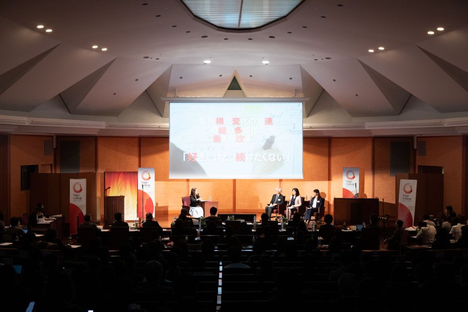パネリストは、エイカレ特別審査員の佐藤博樹氏、白河桃子氏、太田彩子氏。